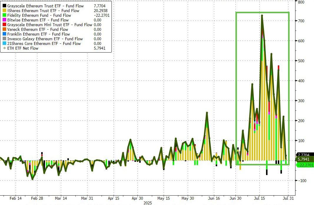 Ethereum ETFs enjoy a streak of net inflows in July.